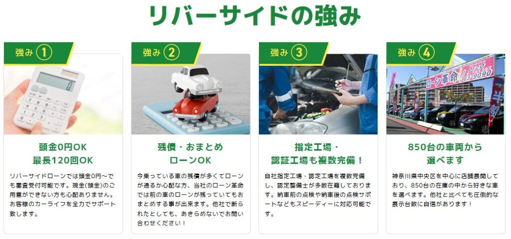 リバーサイドの自社ローンは、頭金0円や柔軟な審査対応など、ローン審査に不安を抱える方にとっては心強い選択肢となりますね。